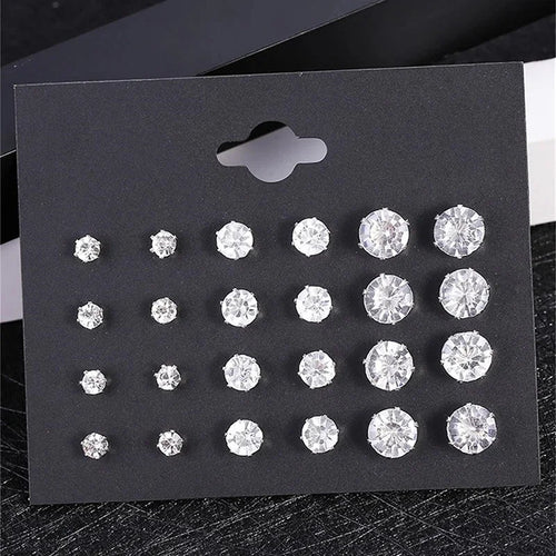 Gigi's 12 Pair/Pack White Shiny Stud Earrings Set